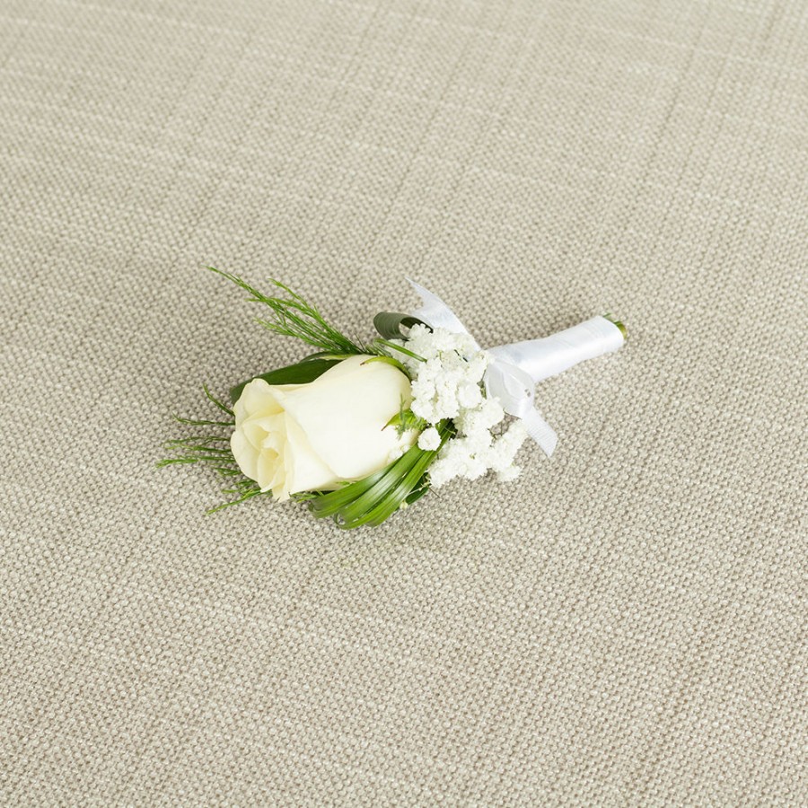 Add a touch of timeless elegance to your wedding ensemble with our Timeless White Rose Boutonniere. This beautiful arrangement features a single white rose, delicate gypsophila, and lush aralia leaves, all meticulously hand-selected for their quality and freshness. The hand-tied white satin ribbon provides a graceful finish, making it a perfect match for any groom’s suit.